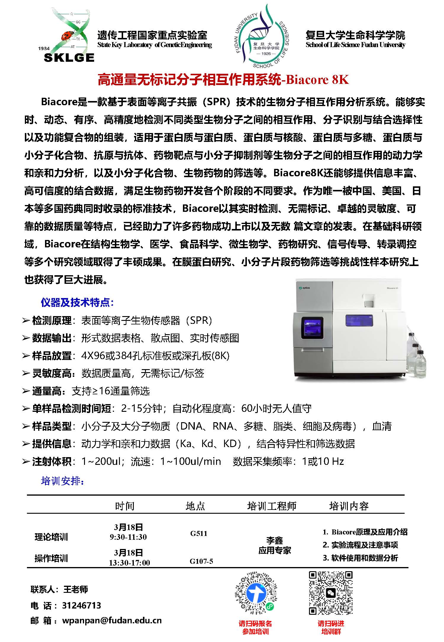 高通量无标记分子分子互作检测仪 Biacore 8k的理论和上机培训