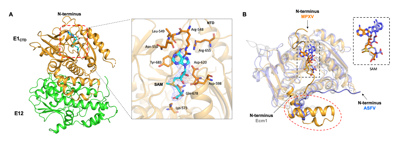 图1. 猴痘病毒来源RNA(鸟嘌呤-N7)甲基转移酶-SAM复合物的三维结构