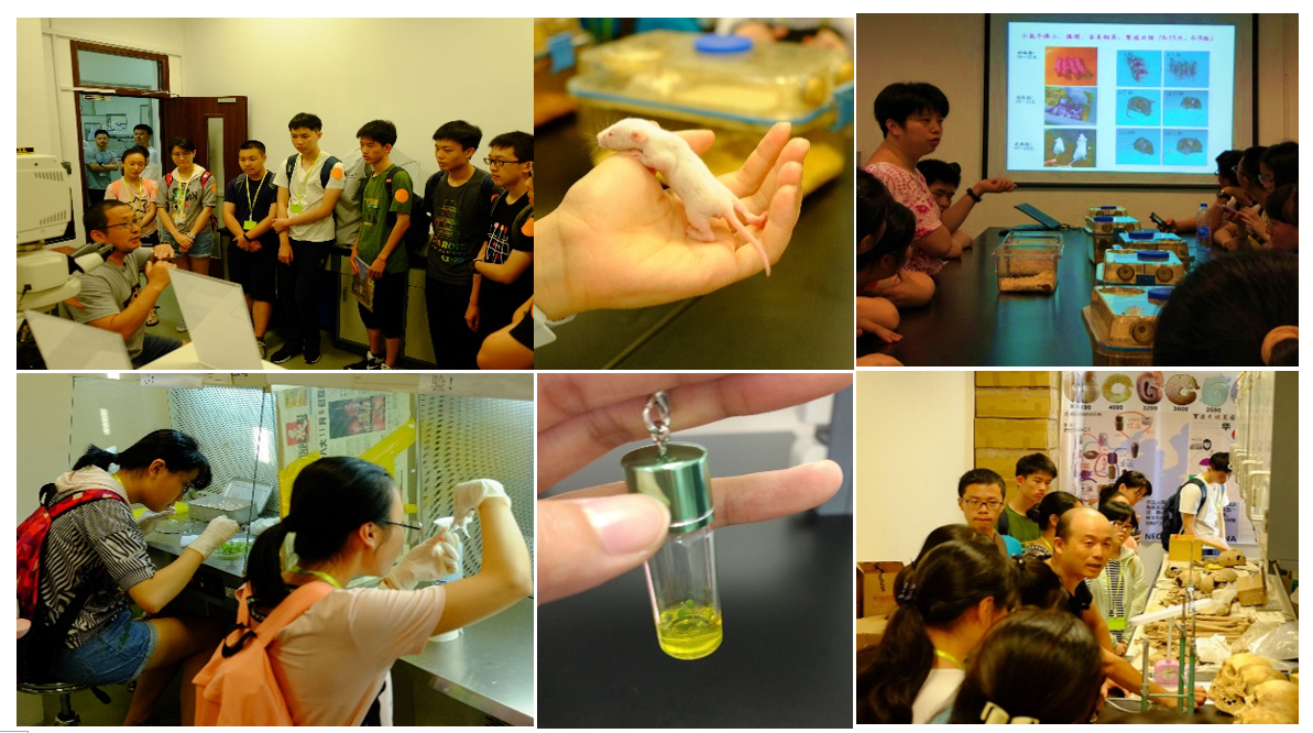 在此期间,营员们参观了遗传工程国家重点实验室仪器平台、小鼠平台、转基因植物平台,并进入李辉教授的古DNA实验室进行探秘。平台的工作人员给营员们介绍了仪器的功能和科研用途,并且展示了荧光显微镜下的微观世界,有红绿蓝三色荧光标记的果蝇大脑、染成蓝色的小鼠胚胎等,营员们直呼生命体内部的世界如此神奇。葛葵葵老师给大家介绍了转基因小鼠的用途及小鼠怎样为攻克疾病而服务等知识。营员们在转基因植物平台,亲自体验了如何进行组织培养,感受到了实验的严谨和规范。李辉教授从基因、骨标本、社会服务三方面层层揭秘古DNA实验室的研究奥秘,展示科学的魅力。