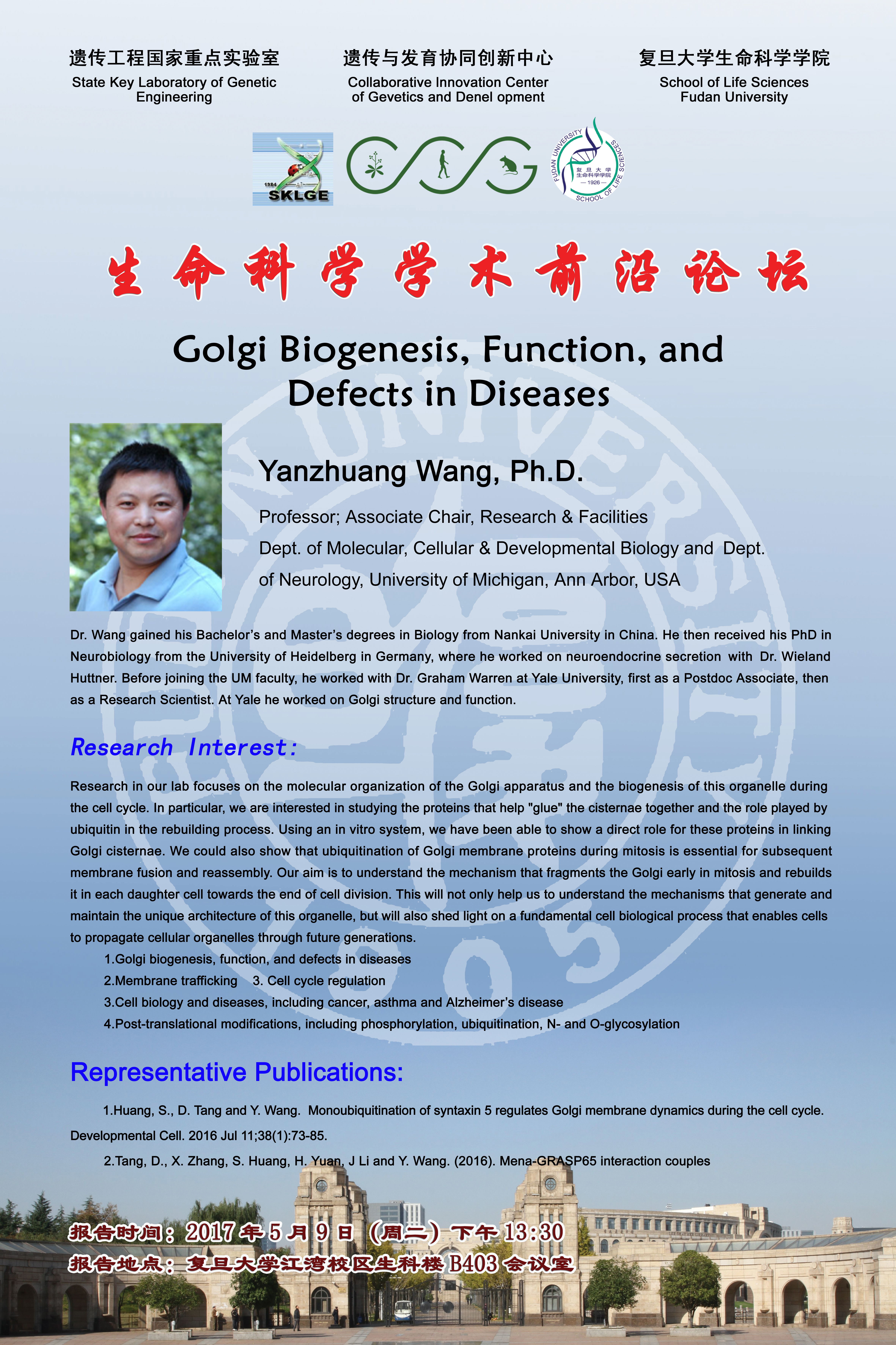 生命科学前沿学术论坛20170509:Yanzhuang Wang, Ph.D(University of Michigan, Ann Arbor, USA)