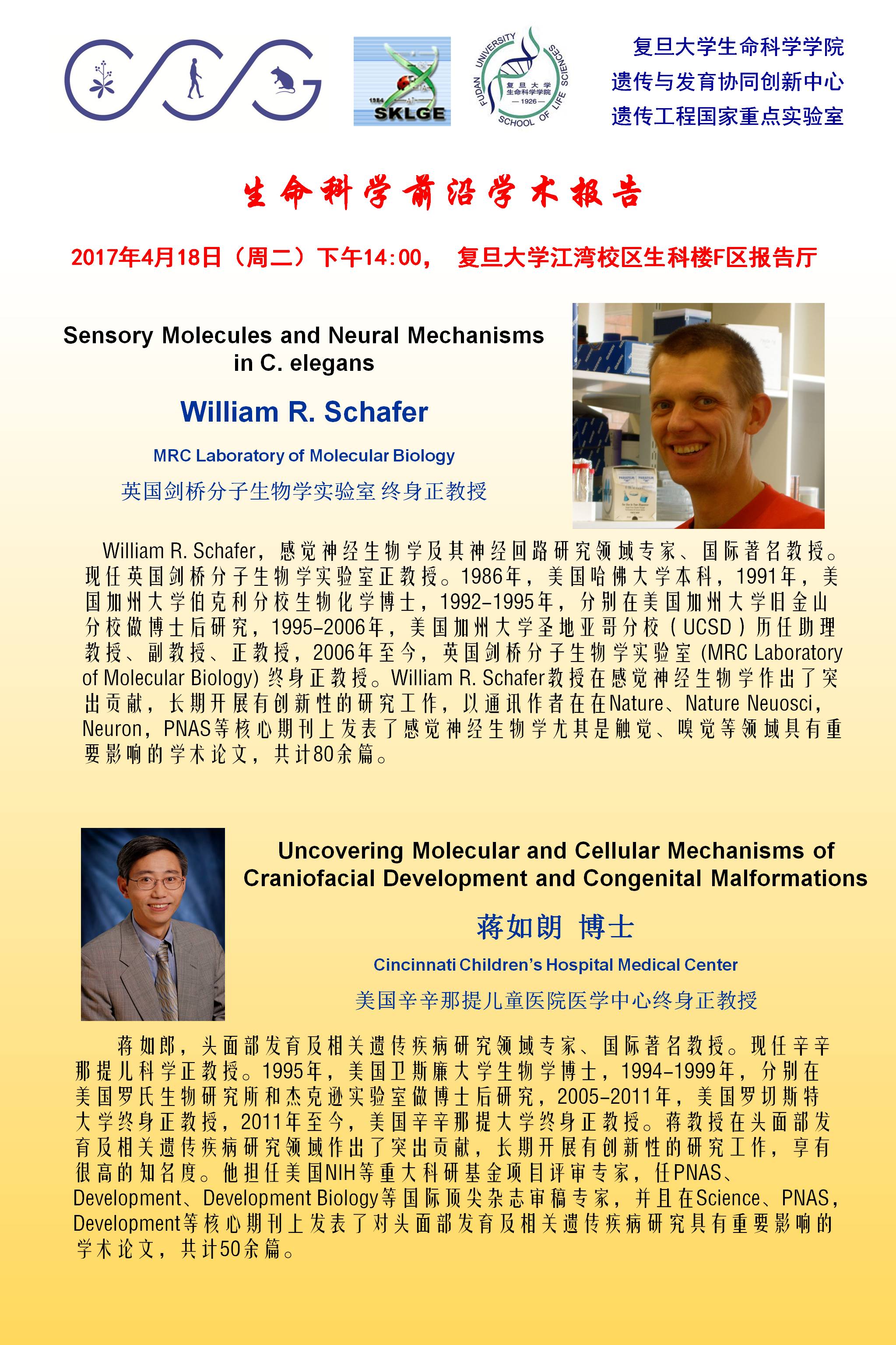 生命科学前沿学术报告海报20170418--William R. Schafer和蒋如郎教授