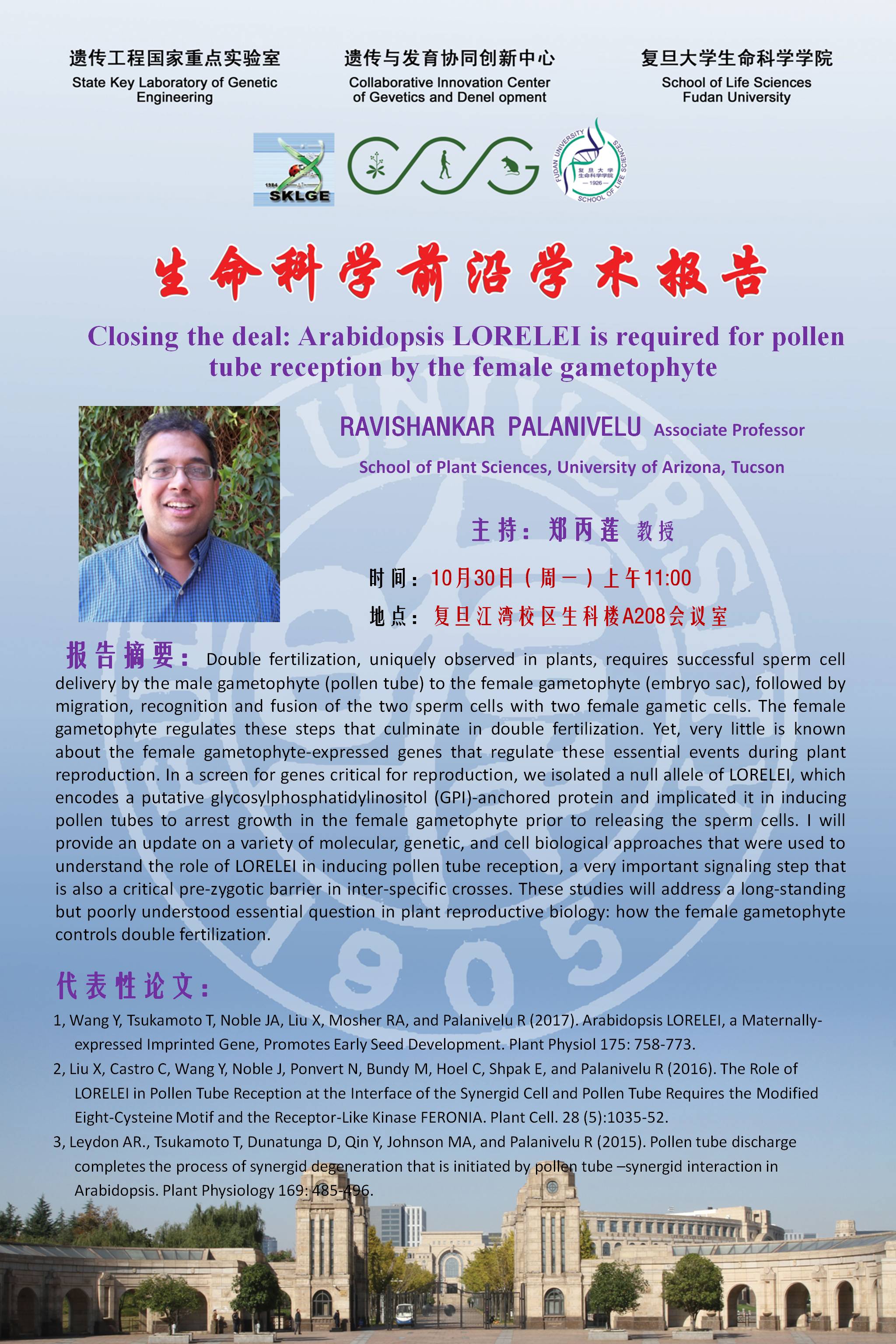 生命科学学术前沿讲坛报告20171030: Ravishankar Palanivelu 副教授
