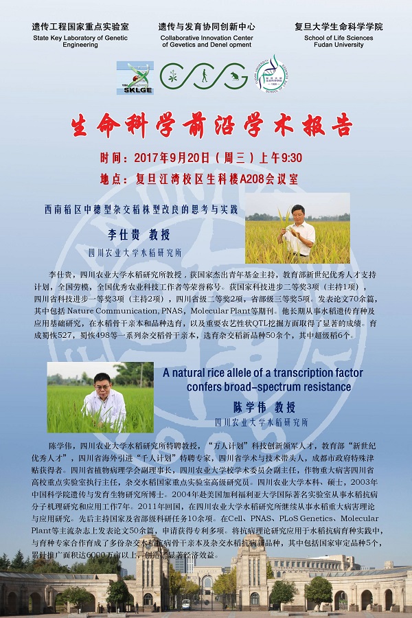 生命科学学术前沿讲坛报告-20170920:李仕贵、陈学伟教授(四川农业大学水稻研究所)
