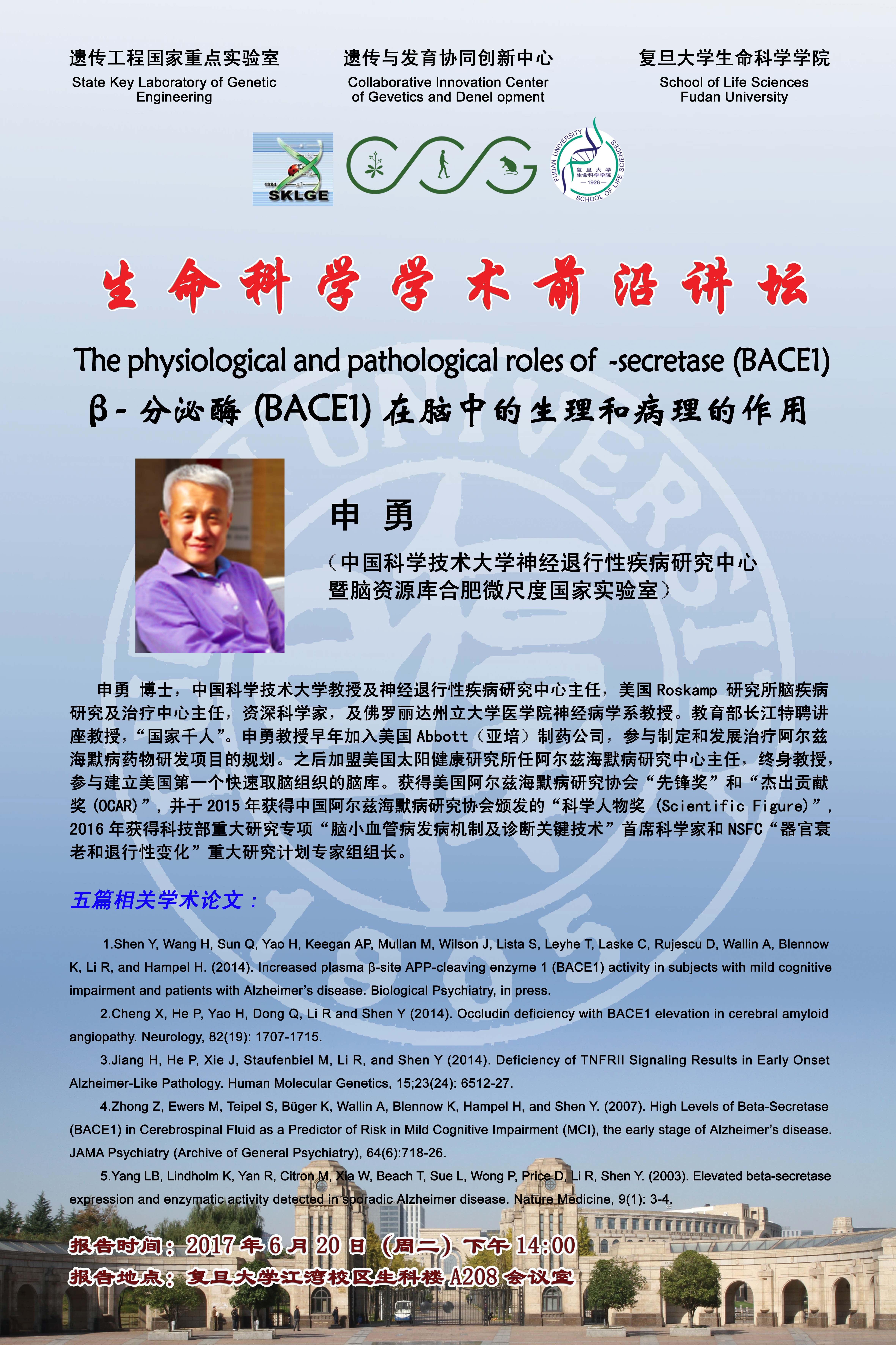 生命科学前沿学术报告20170620:申勇教授(中国科学技术大学)