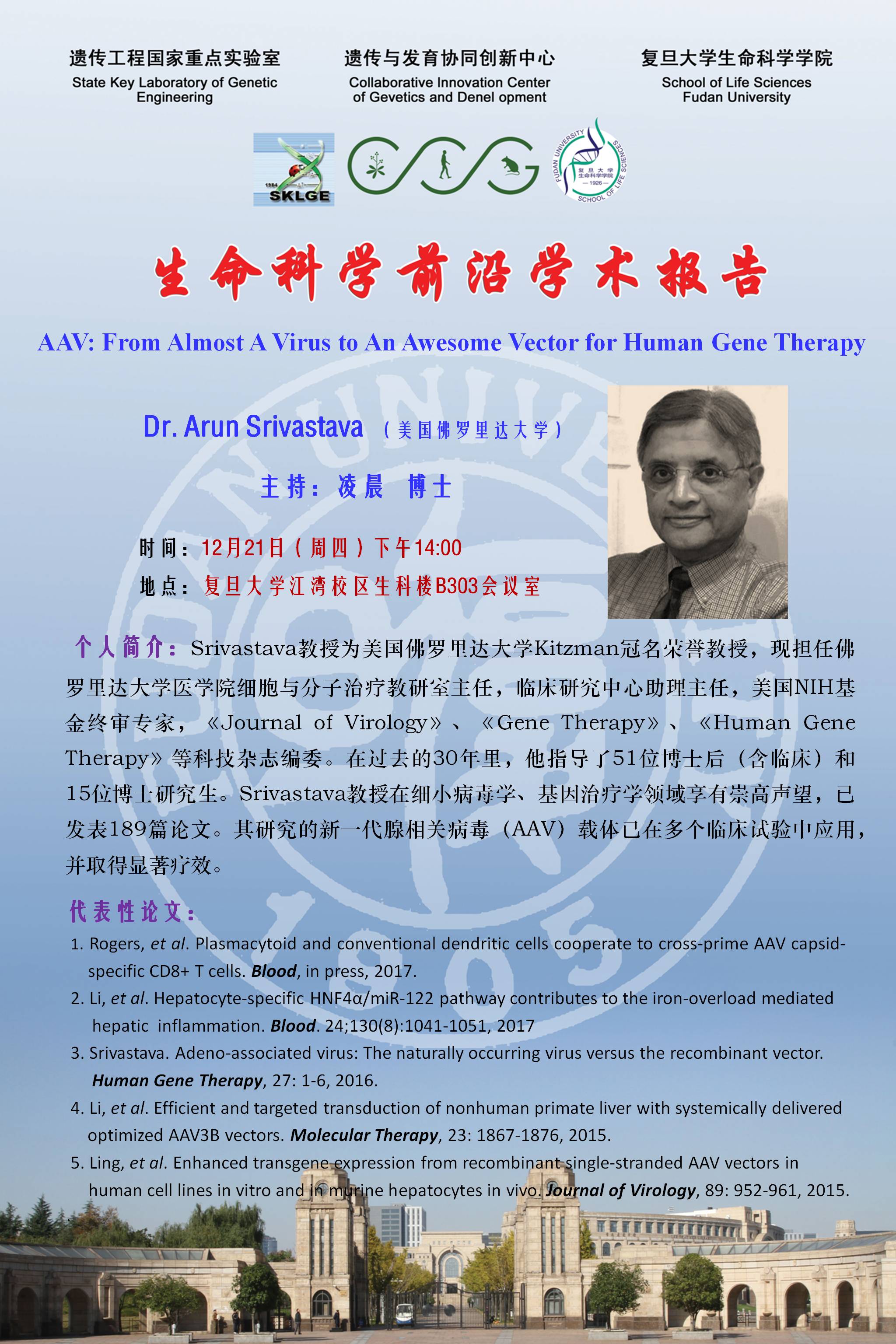 生命科学学术前沿讲坛报告20171221:Dr. Arun Srivastava (美国佛罗里达大学)