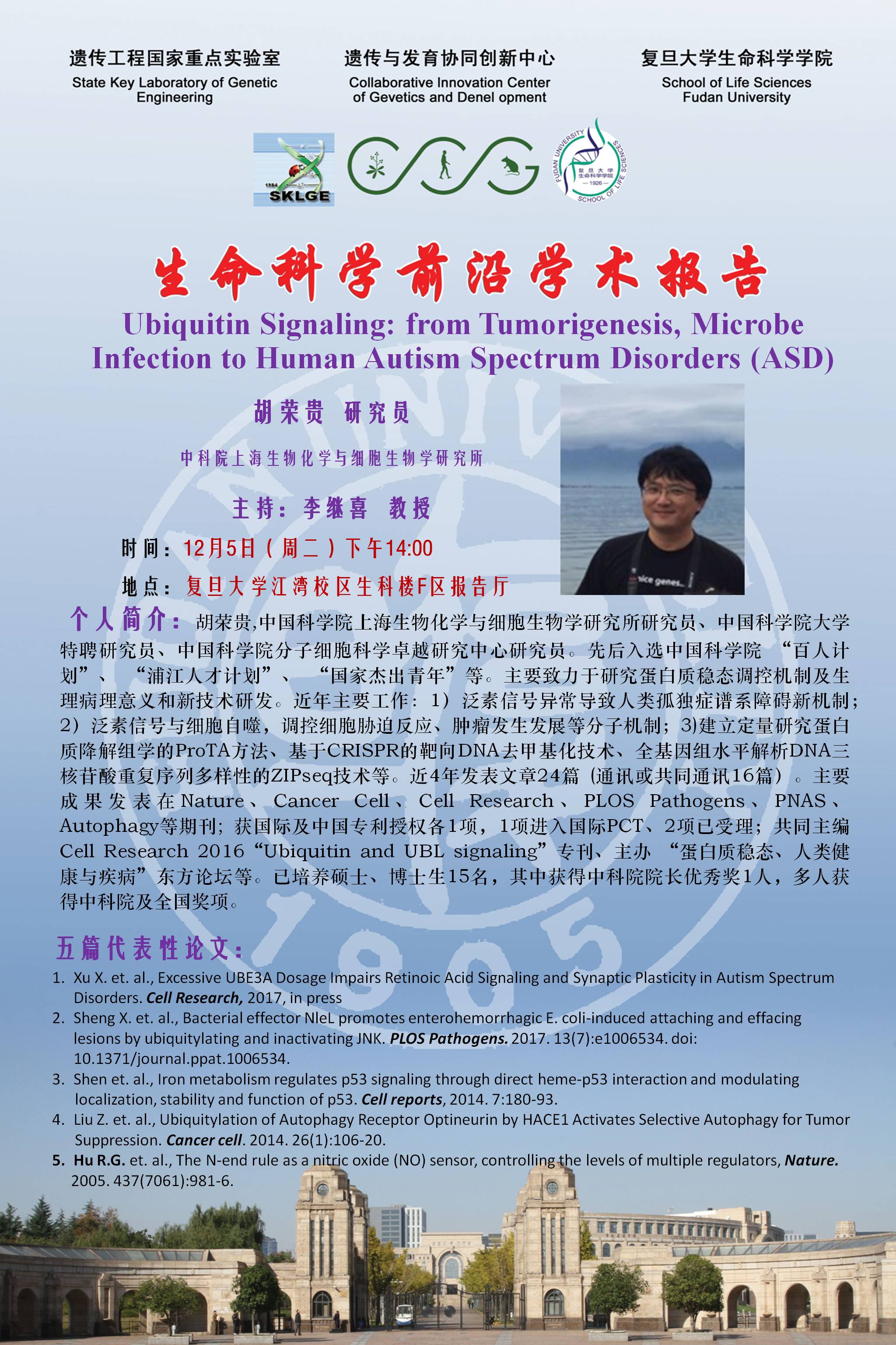 生命科学学术前沿讲坛报告20171205:胡荣贵 研究员(中科院上海生化细胞所)