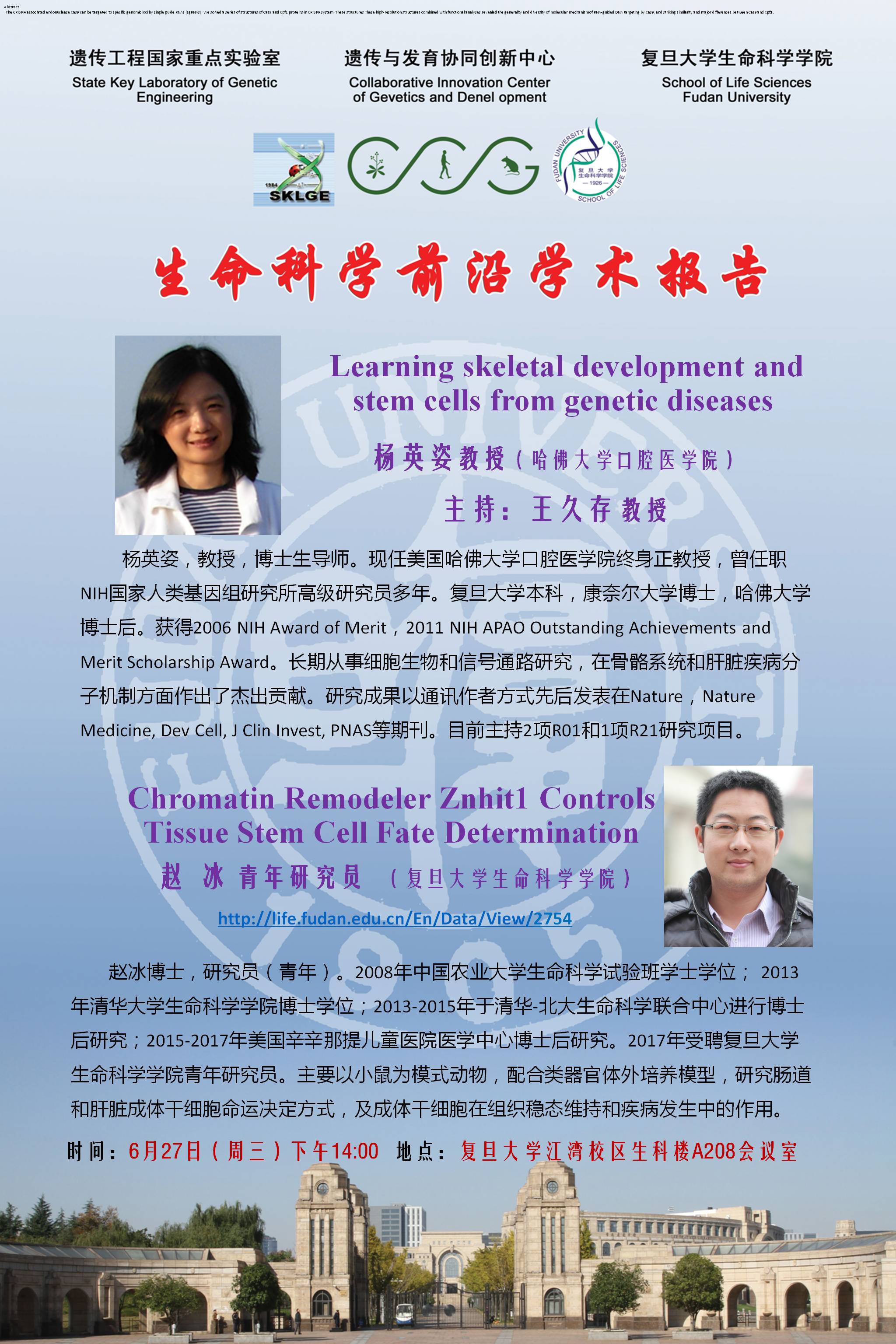 生命科学学术前沿讲坛报告20180627:杨英姿教授(哈佛大学)& 赵冰青年研究员(复旦大学)