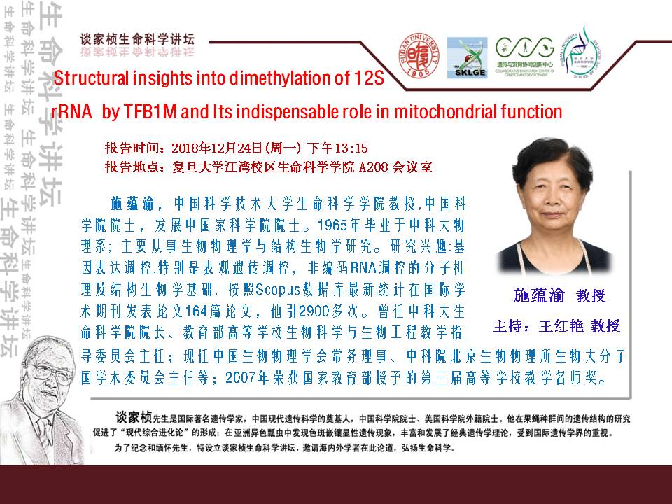 谈家桢生命科学讲坛20181109【71】:施蕴渝 教授 (中国科学技术大学)