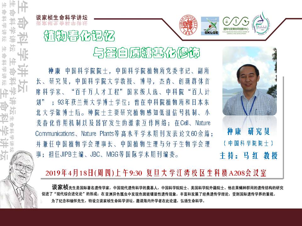 谈家桢生命科学讲坛20190418【75】:种康教授(中科院植物所)