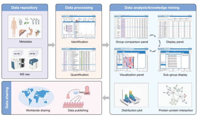 随着蛋白质组学的飞速发展,其在生命科学和生物医药领域的重要作用和应用前景已经日益明晰。由此产生出的海量蛋白质组数据为蛋白质组解析和分析提出了更高的要求。然而,当今领域内蛋白质组产出大数据的实时、全面分析和知识挖掘能力成为了制约蛋白质组技术应用的瓶颈。遗憾的是,目前尚无平台能够完成从质谱原始文件收集、数据处理、生物信息学分析、知识挖掘的一站式综合分析。5月9日,国家蛋白质科学中心(北京)秦钧教授课题组、华东师范大学石铁流教授课题组与我室丁琛教授课题组联合在Nature Biotechnology杂志上发表了题为“Firmiana: towards a one-stop proteomic cloud platform for data processing and analysis”的文章,建立国际首个一站式蛋白质组数据分析云系统Firmiana(梧桐树),大大方便了无生物信息学基础的科研人员也可以无障碍的使用。