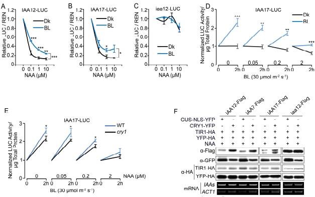 图1. CRY1 Mediates Blue Light Inhibition of Auxin-Induced Degradation of AUX/IAA Proteins