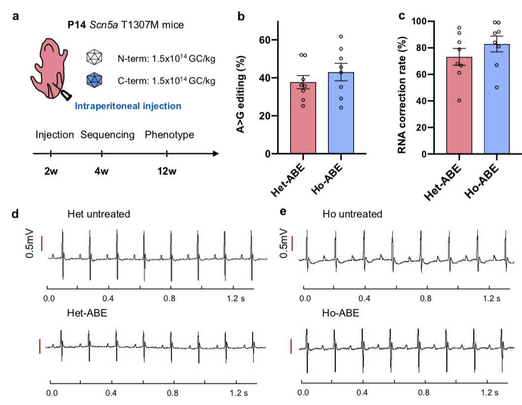 图2.碱基编辑技术治疗长QT综合征小鼠模型
