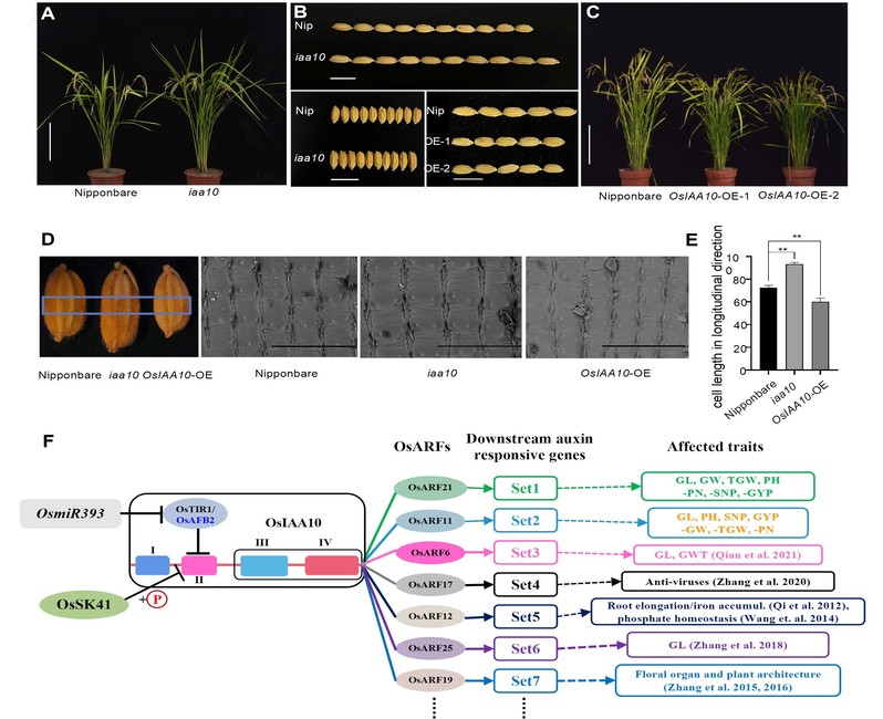 JIPB近日发表我室罗小金教授课题组联合中国农科院黎志康/张帆团队题为“Auxin signaling module OsSK41-OsIAA10-OsARF regulates grain yield traits in rice”的研究论文。该论文采用功能基因组和群体基因组研究相结合的方法,阐明了复杂的水稻产量性状是如何受生长素信号通路基因网络所调控,提出了OsIAA10通路调控水稻生长发育中复杂农艺性状机理的模型。