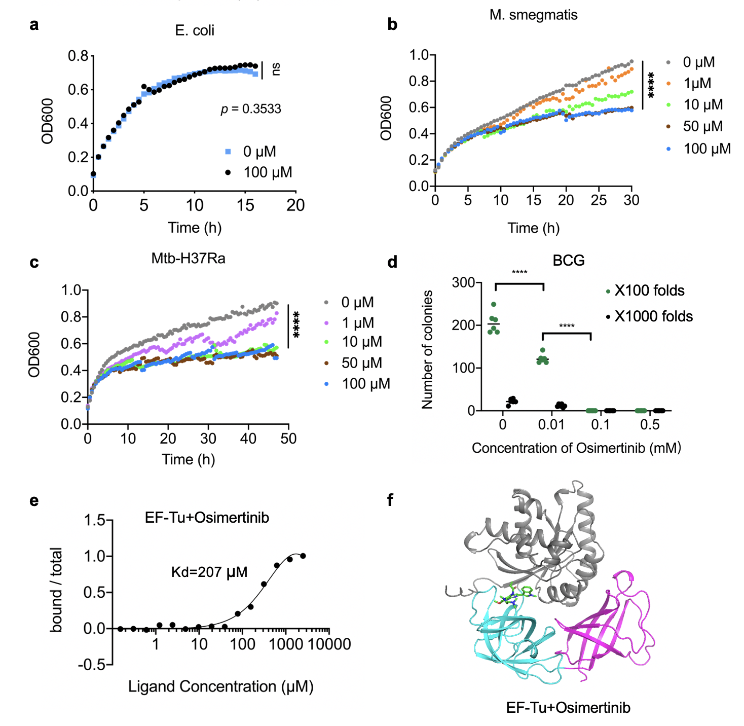 图2.Osimertinib结合EF-Tu并抑制分枝杆菌的生长
