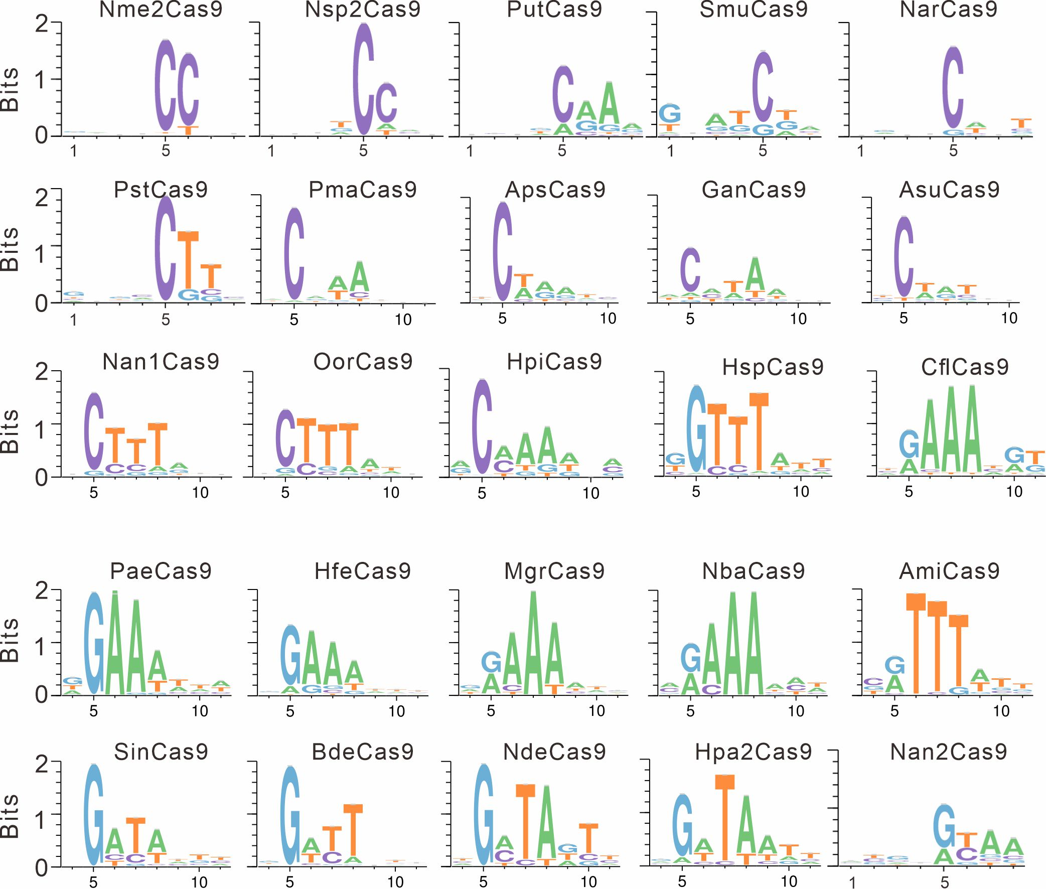 2022年8月12日,课题组又有新突破,在eLife上在线发表了题为“Closely related type II-C Cas9 orthologs recognize diverse PAMs”的研究论文。研究鉴定了25个Cas9的PAM,首次揭示了蛋白同源度很高的Type II-C Cas9识别PAM的多样性。这些PAM长度在5到11个碱基之间,包括富含C、T和A的PAM,变化比Type II-A Cas9更为丰富。论文还探讨了PAM识别和蛋白序列之间的规律。这些结果有助于开发新的Cas9工具。