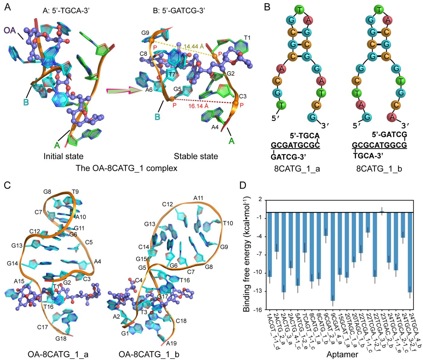 图1. 用单核苷酸对接后组装方法设计的冈田酸核酸适配体