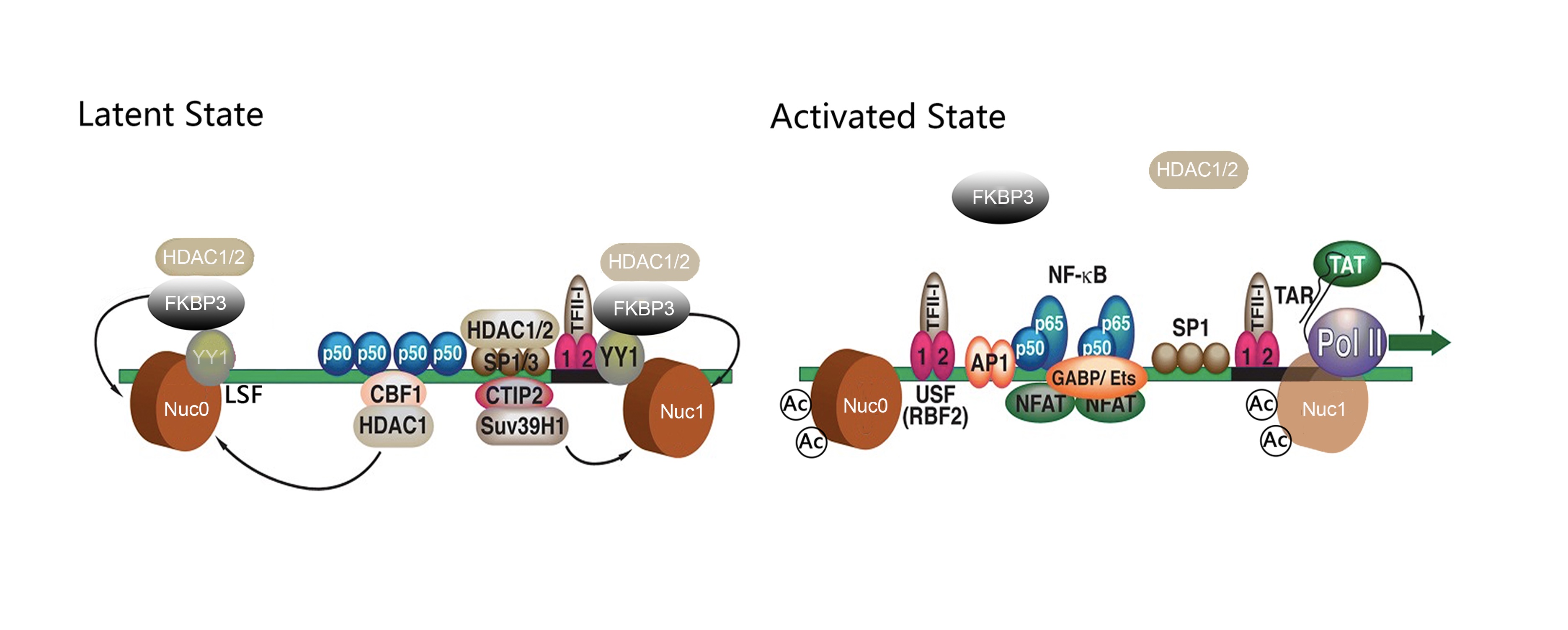 艾滋病是由人类免疫缺陷病毒(HIV)感染引起的一种严重危害人们生命健康的传染性疾病。目前,艾滋病临床治疗方法主要是抗逆转录病毒疗法,虽然,该疗法可以最大限度地抑制患者体内病毒复制,使血浆病毒载量降低至现有常规检测方法测不出的水平,然而,一旦停止药物治疗, 病毒载量又会反弹到治疗前水平。艾滋病不能被治愈的一个重要原因是由于HIV潜伏感染细胞构成的潜伏病毒储藏库的长期存在,而HIV-1潜伏细胞是如何形成及维持的分子机制迄今仍未阐明。