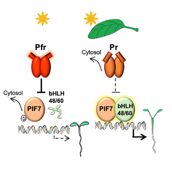 2021年5月4号,李琳教授团队在《Cell Reports》发表题为“Two bHLH Transcription Factors, bHLH48 and bHLH60, Associate with PHYTOCHROME INTERACTING FACTOR 7 to Regulate Hypocotyl Elongation in Arabidopsis”的研究论文,报道了拟南芥中避荫反应关键转录因子PIF7活性的调控。该研究通过酵母单杂交筛选鉴定到bHLH家族的转录因子bHLH48和bHLH60可能参与调控荫影响应基因的表达。利用CRISPR技术构建的bhlh48bhlh60双突变体展现出对荫影响应不敏感的表型。这两个转录因子能够与PIF7互作,且体内与光受体phyB在同一复合物中。通过ChIP-seq发现bHLH60和PIF7共同结合到一簇荫影相关基因的启动子上。体外、体内生化实验发现bHLH48和bHLH60可以增加PIF7的DNA结合能力,两者协同调控下游基因表达。这一研究进一步完善了植物早期避荫反应的转录调控网络,同时为转录因子之间形成二聚体精细调控植物对外界环境变化提供新的认识。复旦大学杨传伟(博士后)为论文的第一作者,李琳教授为通讯作者。文章链接:https://www.sciencedirect.com/science/article/pii/S2211124721003703.
