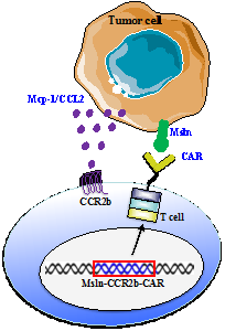 图1. 趋化因子受体CCR2b/CCR4增强Msln-CAR T细胞抗肿瘤模式图