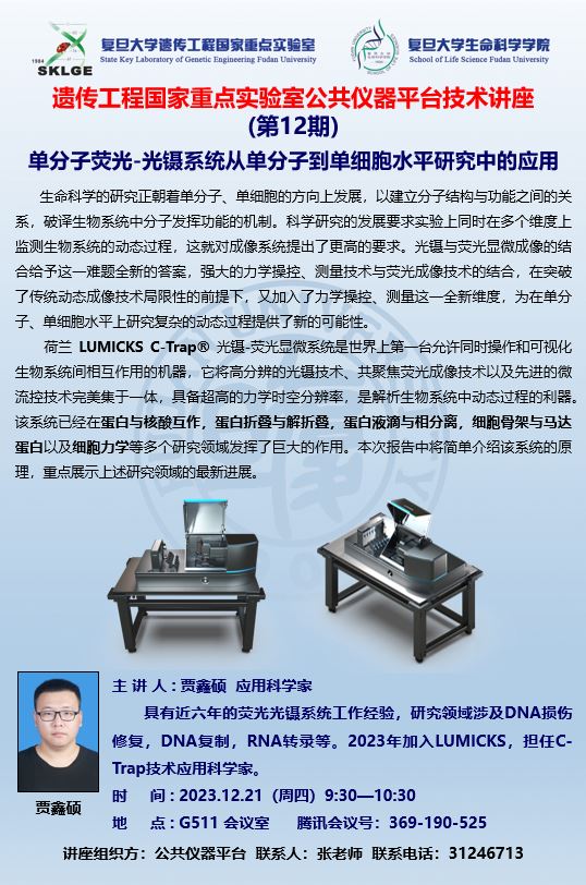 国重平台第12期技术讲座-单分子荧光-光镊系统从单分子到单细胞水平研究中的应用