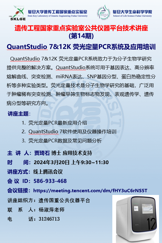 国重平台第14期技术讲座-QuantStudio 7&12 K荧光定量PCR系统及应用培训