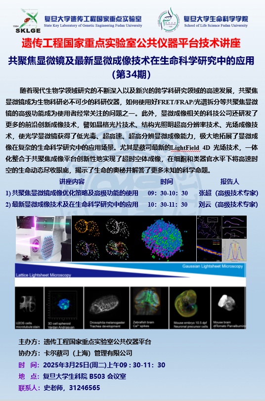 平台第34期技术讲座-共聚焦显微镜及最新显微成像技术在生命科学研究中的应用