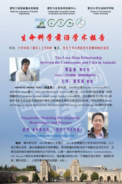 生命科学学术前沿讲坛报告20181116:邹孟甫研究员(国纪念斯隆-凯特琳癌症中心)& 赵冰青年研究员(复旦大学)
