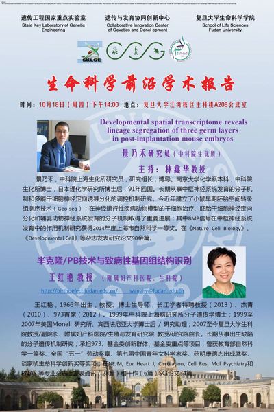 生命科学学术前沿讲坛【104】20181112:王宏伟 教授(清华大学) 、甘建华(复旦生科院)
