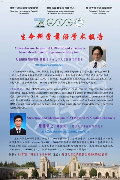 生命科学学术前沿讲坛报告20180427:Osamu Nureki教授(东京大学)& 服部素之 研究员(复旦大学生命科学学院)
