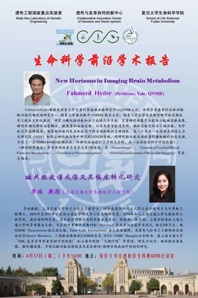 生命科学学术前沿讲坛20180417:Fahmeed Hyder ( Yale, QNMR) & 李瑶(上交大)