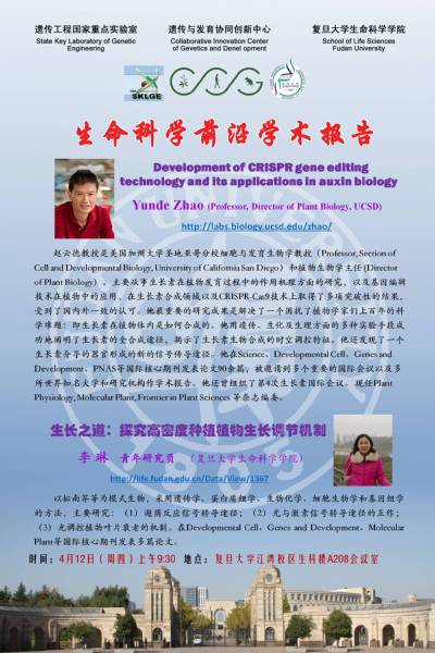 生命科学学术前沿讲坛报告20180412:赵云德教授(美国加州大学圣地亚哥分校)& 李琳 青年研究员(复旦大学生科院)