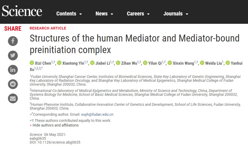 又一突破!徐彦辉团队《Science》揭示完整转录起始超级复合物结构与功能