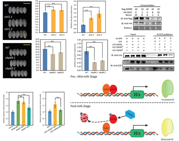 罗小金课题组合作发现OsSK41/OsGSK5依赖的OsEBP89磷酸化负调控水稻胚乳直链淀粉合成