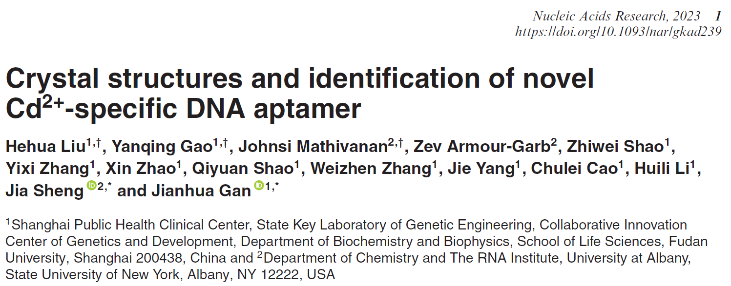 NAR┃甘建华/盛佳团队首次揭示DNA适配体结合Cd2+的机制
