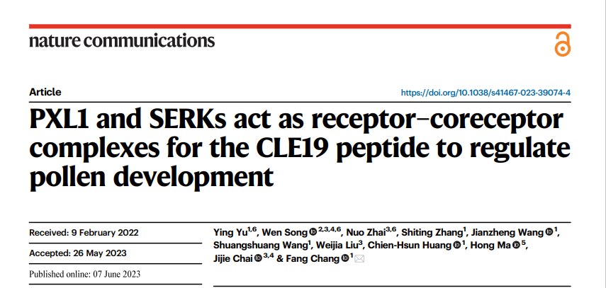 NC|常芳团队合作研究揭示CLE19-PXL1-SERKs配基-受体-共受体复合物调控花粉发育的分子机制
