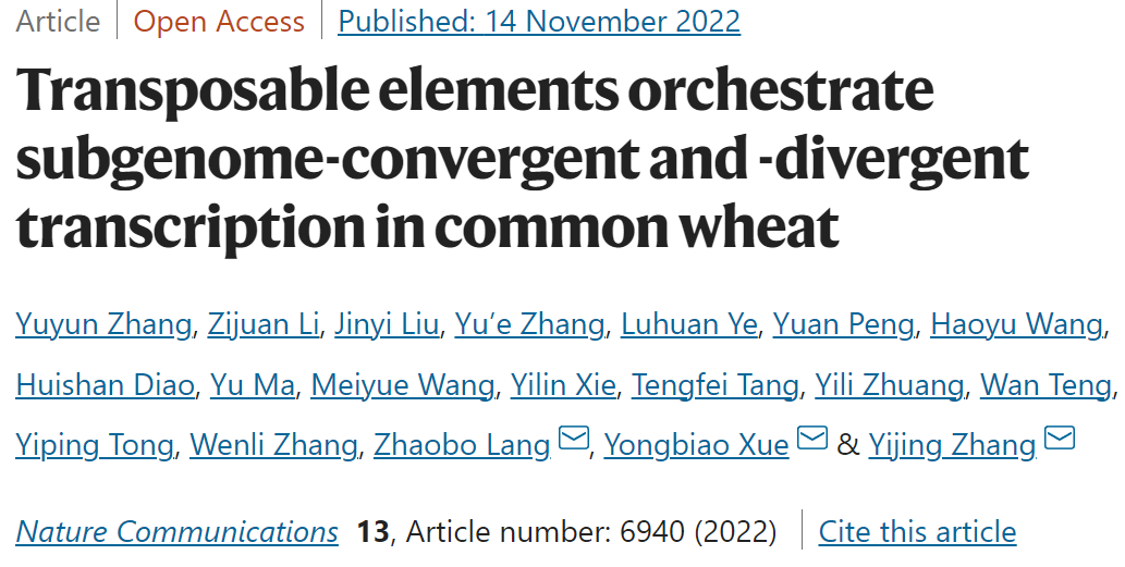 张一婧课题组利用调控组揭示古老转座子扩张影响多倍体小麦 转录调控演化