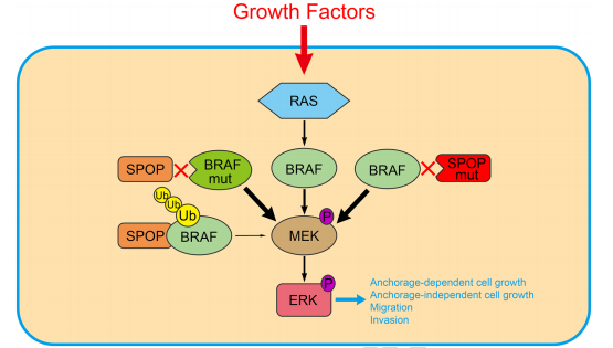 王陈继/李瑶团队揭示SPOP基因突变促进BRAF依赖性的MAPK-ERK信号通路异常激活的致癌机制