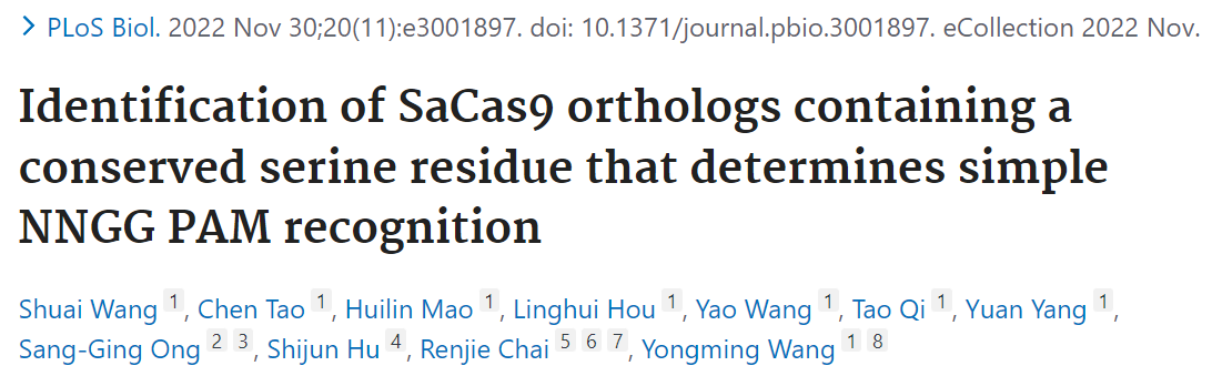 王永明课题组开发出识别N4C PAM的CRISPR/Cas9工具