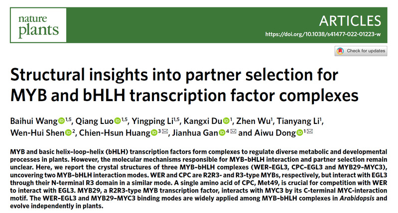 Nature Plants | 揭示植物不同MYB和bHLH转录因子选择伙伴形成复合物的分子机制