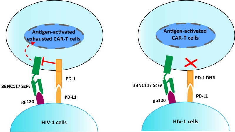 朱焕章团队发现携带PD-1显性负性受体的抗HIV CAR T可提高其体内的功能活性