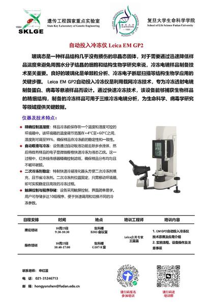 徕卡Leica EM GP2自动投入冷冻仪 的理论和实验技术培训