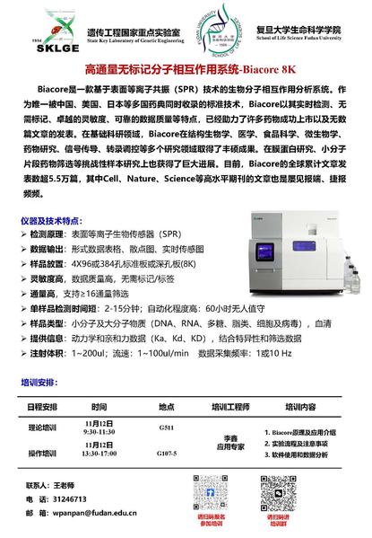 高通量无标记分子分子互作检测仪 Biacore 8k的理论和上机培训